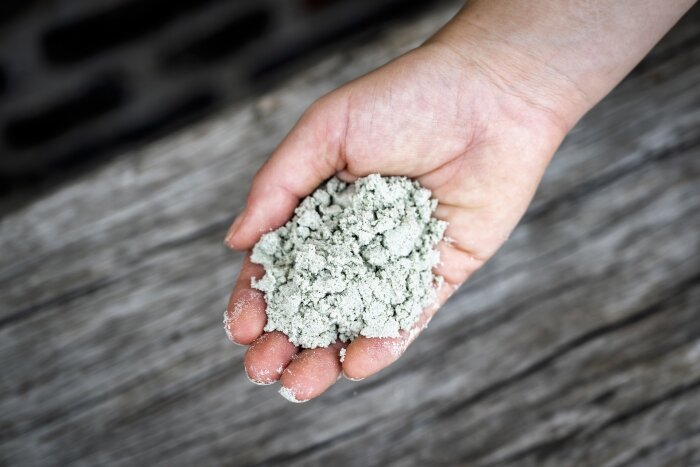 Grained olivine is mixed with the natural sediment. -