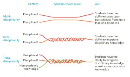 - Knowledge and understanding of the content of other disciplines, without working directly in an interdisciplinary way: multidisciplinarity as a step towards interdisciplinarity.