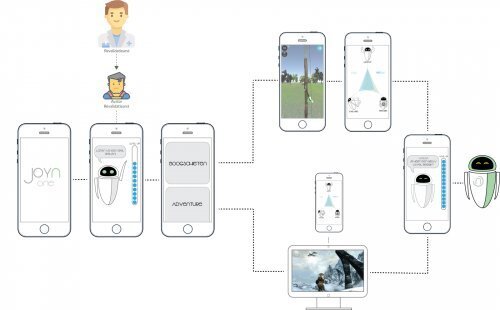 The gamification platform ensures that the child is motivated to use the prosthesis and to correctly perform prosthesis training. Because the platform is linked to the prosthesis, the Joyn One user can carry out prosthesis training prescribed by a rehabilitation physician in a child-friendly and playful way. Through the LEDs on the prosthesis, the user receives notifications from the platform when actions are required. Because the muscle signals in the stump can be read and processed into digital signals, they can be linked to specific actions within a digital game. In this way, children can train and improve their muscle signals by playing video games.