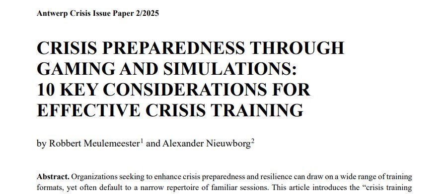 Organizations seeking to enhance crisis preparedness and resilience can draw on a wide range of trainingformats, yet often default to a narrow repertoire of familiar sessions. This article introduces the “crisis trainingtoolbox,” a simple framework that distinguishes four primary forms of crisis training: courses, training,simulations, and games. While games have long been part of crisis-related practice, from early wargaming tocontemporary crisis games, we argue that they remain undervalued and underutilized. We identify two recurringpitfalls: overreliance on a single training type and rigid adherence to standardized formats. To address thesechallenges, drawing from our experience in game design, this article proposes ten key considerations for designingeffective crisis simulations and games. These considerations are presented as parameters, or levers, that can beadjusted to align sessions with organizational needs. We argue that a deliberate, goal-oriented, and reverseengineered approach to exercise design is essential to move beyond “check-the-box” training practices, fosteradaptability and creativity, and realize the full potential of simulations and games