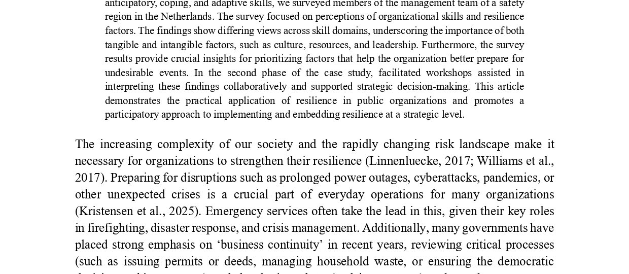 organizational resilience was evaluated and improved within a Dutch safety region. Using a