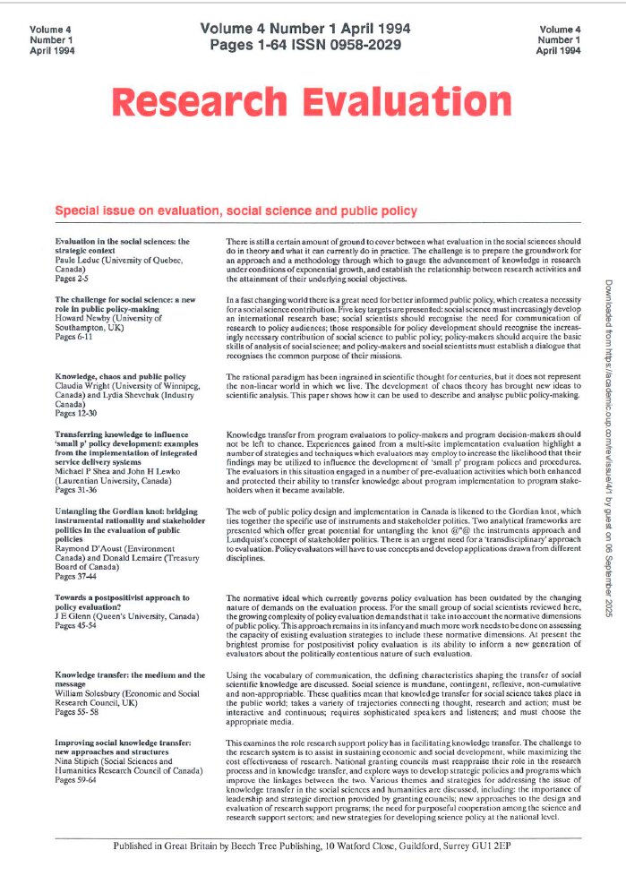 The 1995 Conference was as special issue on evaluation, social sciences and public policy