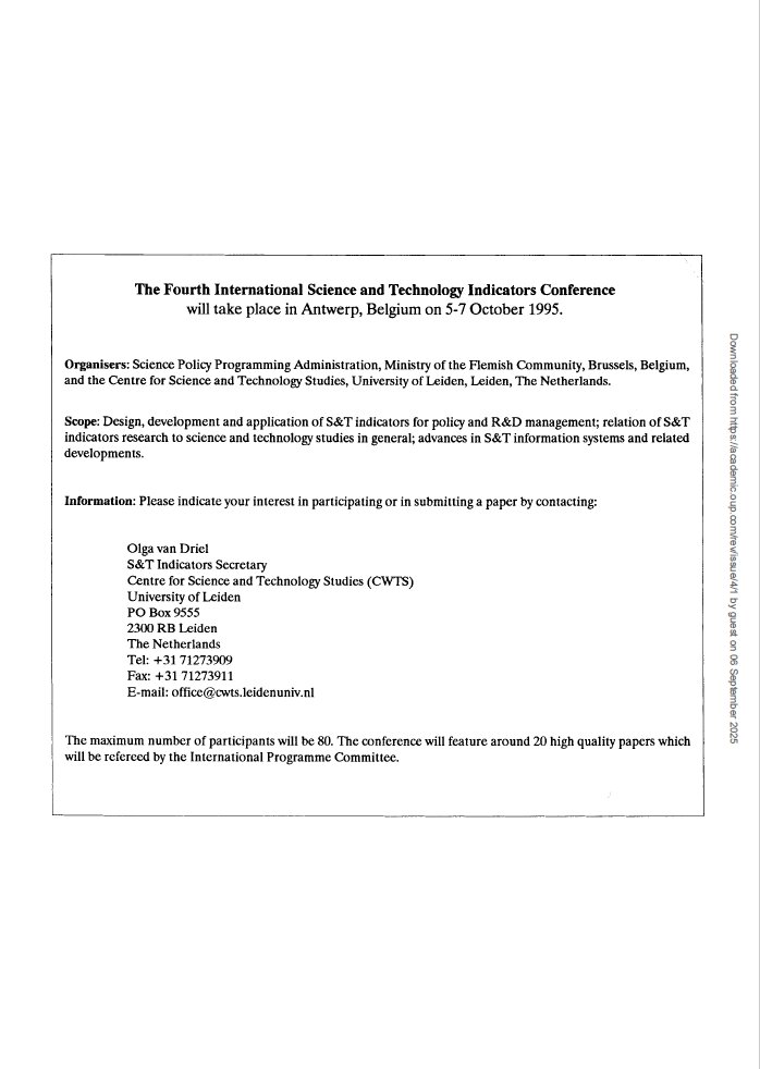The Fourth International Science and Technology Indicators Conference in Antwerp -