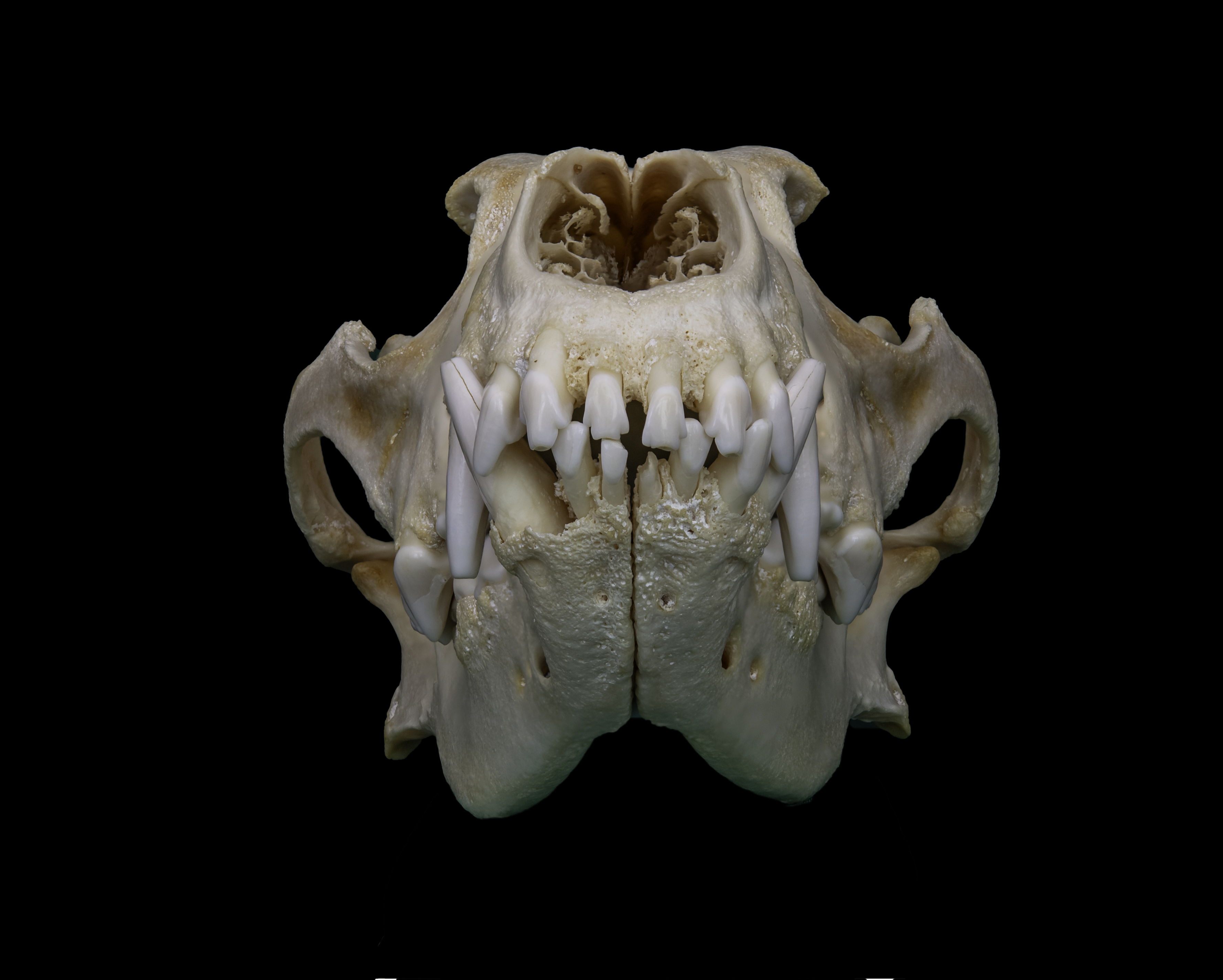 Figure. Skull of a German Shepherd dog (Canis lupus familiaris), Osteological collection of the Museum of Veterinary Medicine, University of Padua. Department of Comparative Biomedicine and Nutrition. Photo: R. Ballestriero, O. A. Burke.