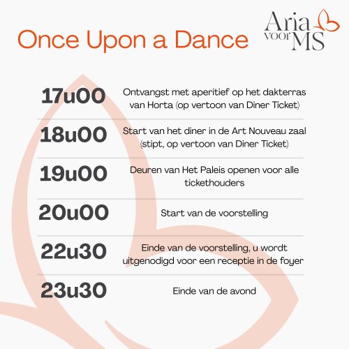 Following a successful first edition in 2024, we warmly welcome you once again to the ARIA for MS Benefit Evening on May 23, 2026. For this second edition, we are offering a full-length performance of the Cinderella ballet, presented by Junior Ballet Antwerp. Would you like to enhance the evening with exceptional cuisine? Then we cordially invite you and your guests to Horta’s Art Nouveau Hall for a three-course dinner. To conclude the evening, we’ll offer everyone a drink at the reception, where we can all chat in an informal atmosphere.