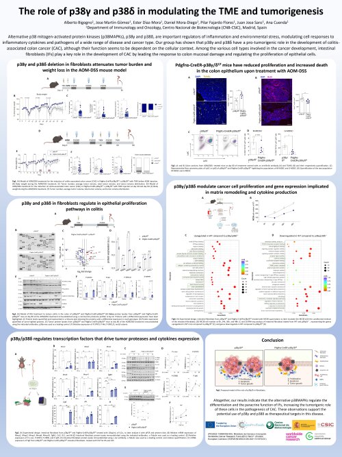Alberto Bigogno, Jose Martìn-Gòmez, Ester Dìaz-Mora, Daniel Mora-Diego, Pilar Fajardo Flores, Juan Jose Sanz, Ana Cuenda. The role of p38γ and p38δ in modulating the TME and tumorigenesis. 20th ASEICA International Congress. 8-10 October, 2025.
