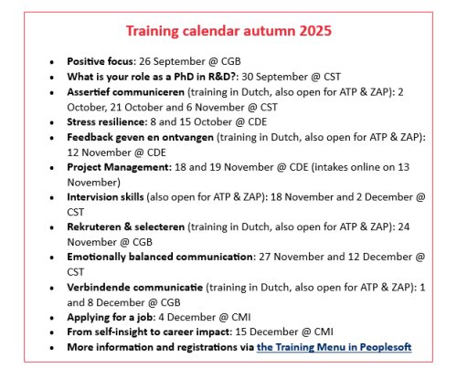 The following courses are organised in 2025. You can register for these courses via the training menu (staff only) or talentcenter@uantwerpen.be.