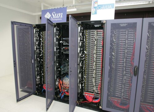 Our first CalcUA cluster Babbage was officially launched in March 2005: 256 nodes in 8 racks with a whopping 2.5 TFlop/s peak performance! The clusters Turing, Hopper, Leibniz and Vaughan followed.