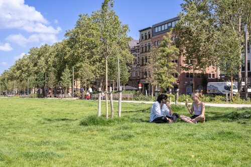 “Ook de stad Antwerpen ontsnapt daar niet aan”, legt bio-ingenieur Tim Goossens (Universiteit Antwerpen) uit. Hij startte onlangs bij Onderzoeksgroep A-PECS, waar het stedelijke microklimaat bestudeerd wordt onder leiding van prof. Siegfried Denys. Goossens bouwt er verder op zijn masterscriptie over hitte-eilanden. “Mijn thesisbegeleider, Marjan Demuynck, kwam met de ideale casestudy: het Zuidpark. Vijf jaar geleden was die plek nog één grote parking; ondertussen hebben rijen kasseien plaatsgemaakt voor speelplekken, grasvelden en jonge bomen.”