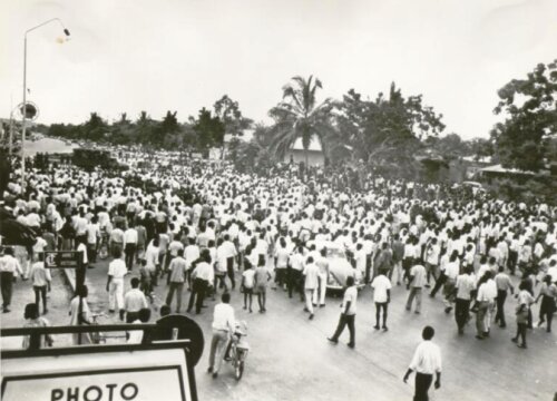 For the struggle for independence in the Belgian Congo, Nkrumah’s initiative indeed had direct consequences. Gaston Diomi, mayor of one of Léopoldville’s municipalities (today Kinshasa), attended the conference in Accra and was supposed to testify about his experience during a meeting of his political party, Alliance des Bakongo, on January 4, 1959. At the last minute, however, the colonial authorities of Léopoldville prohibited the meeting. As a result, people took to the streets, and made their demand for independence very explicit. Belgium, which claimed to govern a ‘model colony’, could no longer turn a blind eye to Congolese emancipation demands. A year later the country became independent.