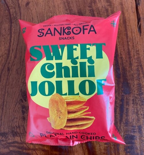 Some googling confirms my suspicion: this bag of chips opens up a whole world of African diaspora history. The founder of the brand is of Ghanaian-Lebanese-Liberian origin and obtained a degree in the US, after which he worked in corporate New York. Yet in 2016, he moved back to Ghana to launch Sankofa Snacks.