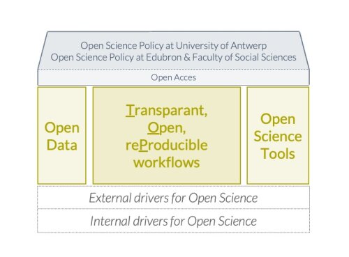 The external and internal drivers for Open Science form the foundation of the Open House. Open Science is increasingly becoming a requirement from external funding bodies. However, we aim to implement Open Science in such a way that researchers also recognize and appreciate its added value for their own work.