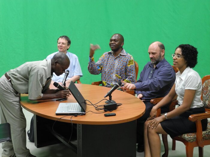 RTNC2, the public television channel that focuses on news on development and entertainment for the people of Kinshasa, but also the whole of the Democratic Republic of Congo, invited prof. Van geertruyden (UA), prof. Jacquemyn (UA), prof. Lutumba (UNIKIN) and Dr. Inocêncio da Luz (UA) to the studios in Kinshasa for an interview on their upcoming research project on cervical cancer. This research is part of the VLIR-UOS funded project on "Scientific support for the implementation of interdisciplinary / Inter-university project on maternal health in Unikin/Unilub".