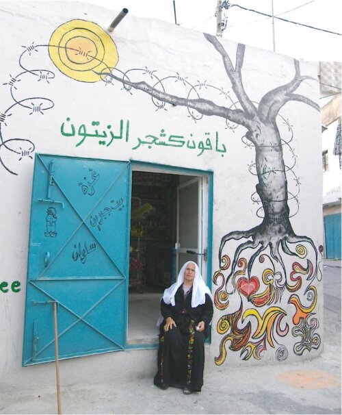 Representations of the (Palestinian) roots regularly appear in the streetscape of Aida (see photo). The peaceful forms of resistance and initiatives of the women studied by Dr Kholoud Al-Ajarma contribute to protecting and perpetuating Palestinian culture and identity, which are connected to the land.