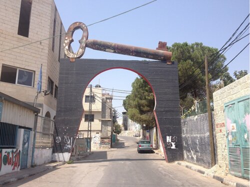 Aida, Bethlehem, via https://en.wikipedia.org/wiki/Palestinian_key#/media/File:Aida_Camp_entrance.jpeg consulted on 18/10/25