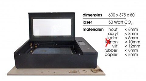 Karton snijden is heel stoffig en vuil. Door het gebruik van karton kende de lasersnijder in het verleden technische problemen. Om de machine in goede conditie te houden, laten we werken met karton niet meer toe.