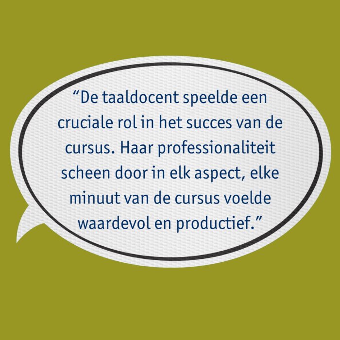 In een taalbad leer je veel op korte tijd omdat je volledig wordt ondergedompeld in de taal. Deze extra- intensieve aanpak vraagt van jou een grote tijdsinvestering maar levert ook zeer snel resultaten op. De interactie met de taaldocent, het leren van en met je medecursisten en je persoonlijke inzet vormen de 3 pijlers van je succes.