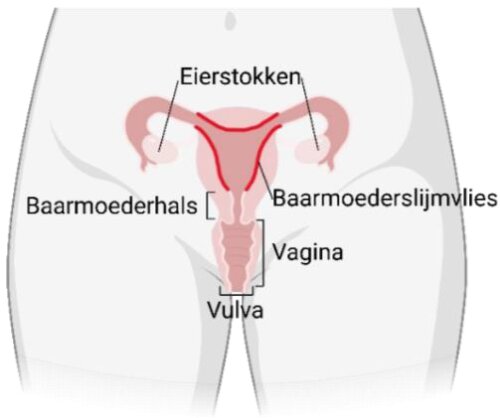- vrouwelijke geslachtsorganen heeft (eierstokken, baarmoeder(hals), vagina, vulva) (genderidentiteit maakt hierbij niet uit),