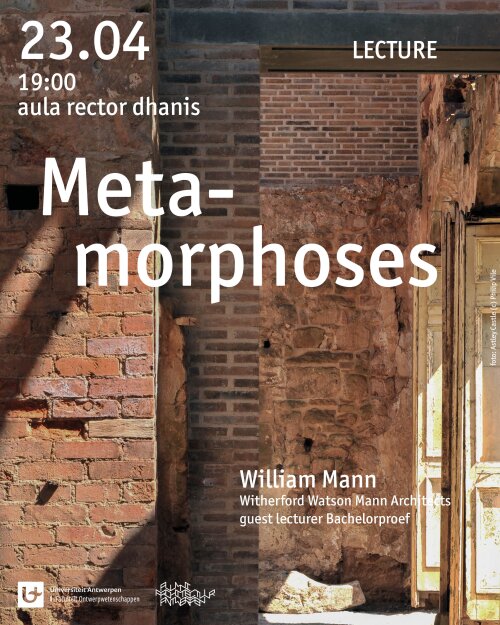 Op donderdagavond 23 april geeft architect William Mann een publieke lezing over enkele projecten van het Londense bureau 'Witherford Watson Mann Architects'. De lezing wordt toegespitst op hergebruik van gebouwen en de stad. Het kantoor is op dit moment geselecteerd voor een Open Oproep in Antwerpen en Oostende.