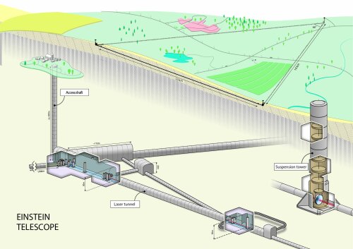 Aan de oppervlakte zal de Einstein Telescoop nauwelijks zichtbaar zijn. Het observatorium wordt namelijk 250 tot 300 meter diep onder de grond gebouwd, met drie gangen van elk 10 kilometer lang. Die ligging zorgt ervoor dat metingen niet worden verstoord door trillingen aan het aardoppervlak.
