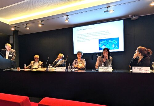 Hij stelde daarna de leden van het panel voor: Els Hertogen, algemeen directeur van de NGO 11.11.11, Griet Seurs, adjunct-directrice-generaal Ontwikkelingssamenwerking en Humanitaire Hulp, FOD Buitenlandse Zaken, en prof. Nadia Molenaers van het Instituut voor Ontwikkelingsbeleid van onze universiteit. Elk van hen gaf een duidelijke en heldere visie op het huidig beleid inzake ontwikkelingssamenwerking. Els Hertogen ging onder meer dieper in op het feit dat de Vlaamse overheid alle budgetten voor ontwikkelingssamenwerking tot nul herleidde en wat dit dan betekende voor de toekomst van dit beleidsdomein. Griet Seurs benadrukte dat de turbulente evoluties in de internationale samenwerking en dito besparingen (een reductie van 25% van de federale begroting) een transformatie van het beleid noodzakelijk maakt. Er zullen hoe dan ook minder projecten in minder landen kunnen opgezet worden en dus dringen prioriteiten zich op. Tenslotte sloot Nadia Molenaers het eerste deel van dit forum af. Zij vroeg zich af welke toekomst er nog voor de ontwikkelingssamenwerking was weggelegd, gelet op de erosie die de ontwikkelingssamenwerking nu treft. Aan de hand van vier scenario’s gaf ze een duidelijk beeld van de hele complexe toekomst van dit beleid ter zake.