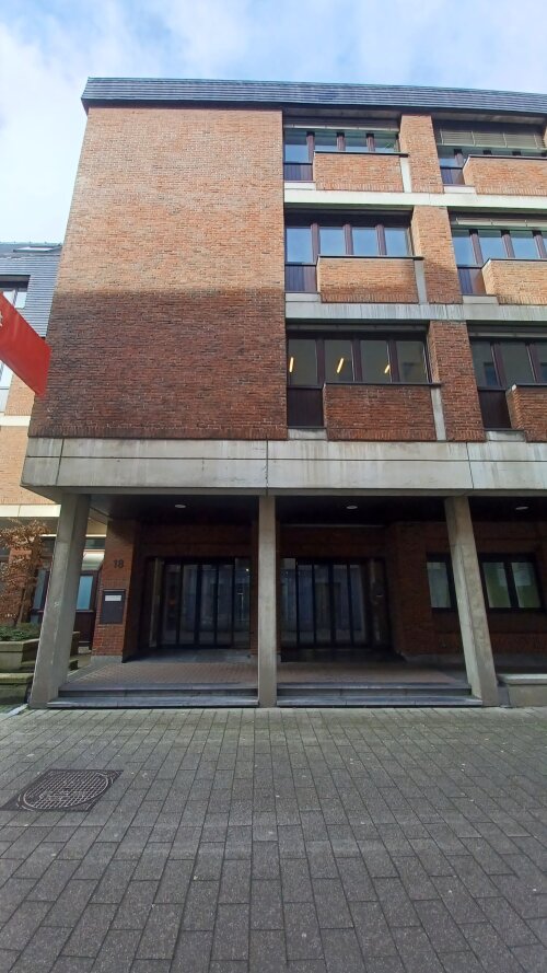 Vanuit de parking, kan je de lift nemen naar het gelijkvloers van dit gebouw.