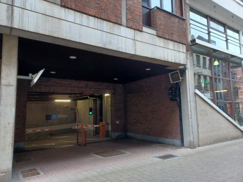 De ingang van de parking is via de Grote Kauwenberg, ter hoogte van nummer 16.