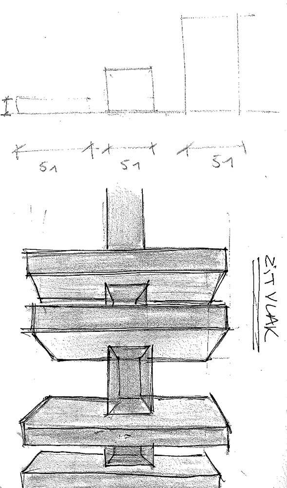 Met ons ontwerp willen wij in interactie gaan met de ruimte en nodigen wij de bezoekers uit om plaats te nemen aan het raam. Ons ontwerp bestaat uit drie individuele elementen die naast elkaar geplaatst worden. Het middelste element kan gebruikt worden als een opstapje naar de historische zithoek in de nis.