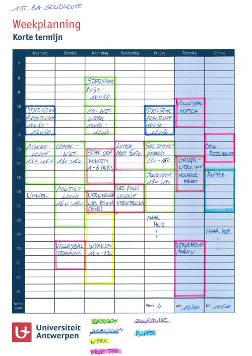 Na je semesteroverzicht is het tijd om per week concreet te plannen.