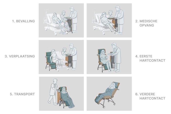 Neonest is een mensgericht zorgsysteem dat de nabijheid tussen ouder en kind ondersteunt tijdens de eerste 1000 minuten na de geboorte — een cruciale periode voor hechting, ontwikkeling en herstel. Vooral voor prematuren, waarbij medische interventies noodzakelijk zijn, is die nabijheid van onschatbare waarde. Toch blijkt uit observaties in het Universitair Ziekenhuis Antwerpen (UZA) dat het gemiddeld 24 uur duurt voor het eerste huid-op-huidcontact plaatsvindt. Dat staat haaks op de aanbevelingen van de WHO, die pleit voor onmiddellijk en onafgebroken contact.