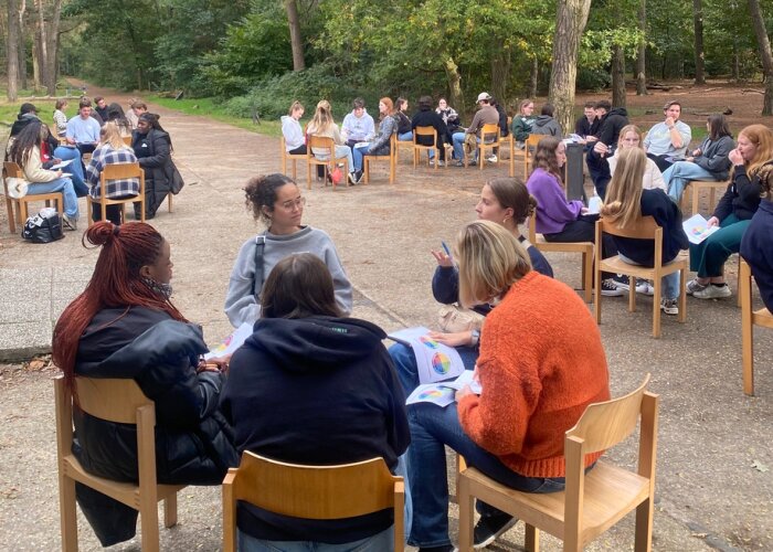 Je stapt binnen in onze hechte community, waar heel wat te beleven valt: leer elkaar onmiddellijk kennen in het begin van het academiejaar op de tweedaagse communicatietraining, praat na over inspirerende gastcolleges en blijf met elkaar in contact dankzij de gezellige alumniactiviteiten/-avonden. Elke dag ga je in dialoog met studenten, docenten en alumni om zo te leren van elkaar.